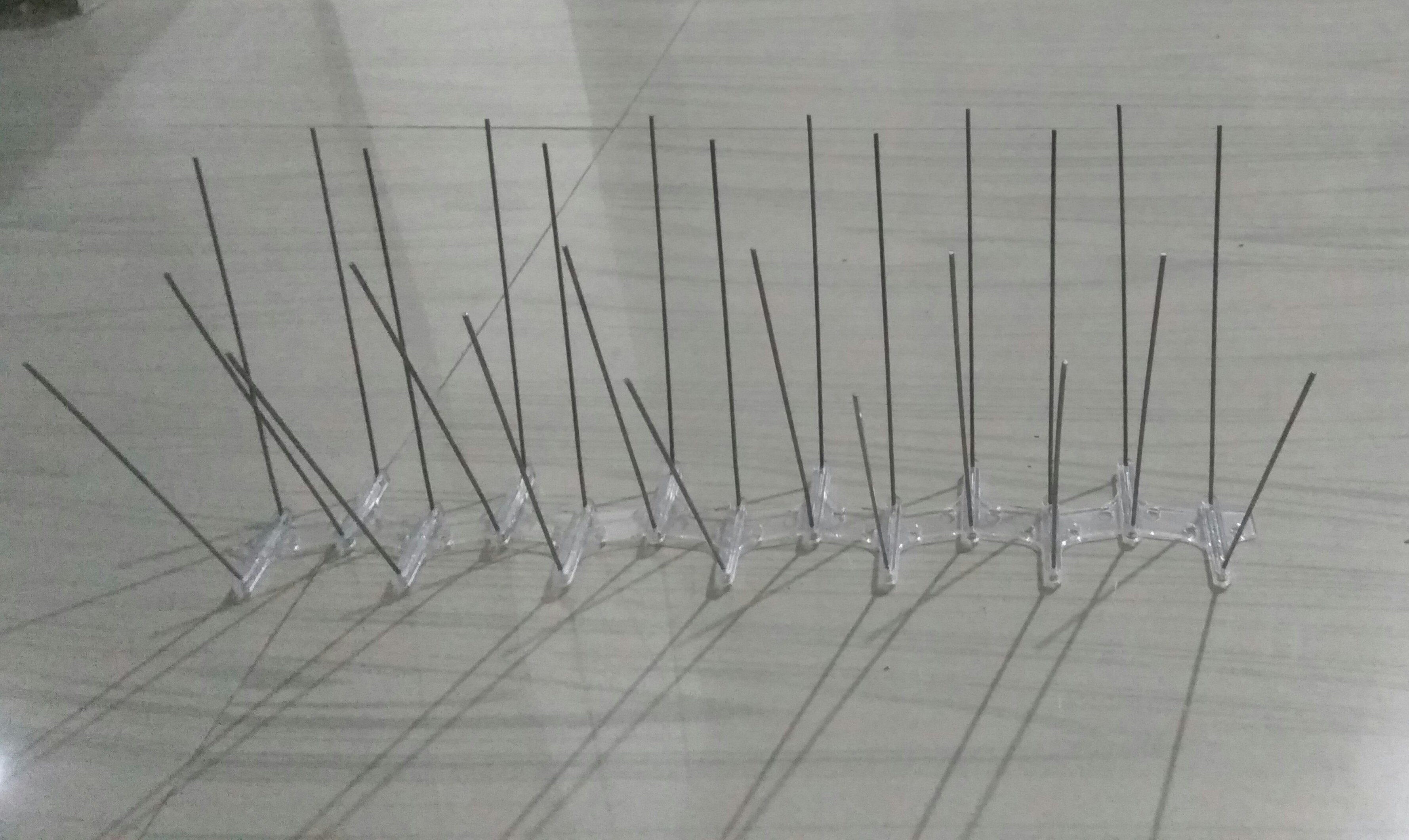 A Pigeon control spikes anti-roosting spike, Pigeon Spikes or roost modification. It is a device consisting of long needle-like rods used for bird control. Bird control spikes can be attached to building ledges, street lighting, Balcony edge, Air conditioners, Duct ledge, balcony ledge and commercial signage to prevent wild or feral birds from perching or roosting.